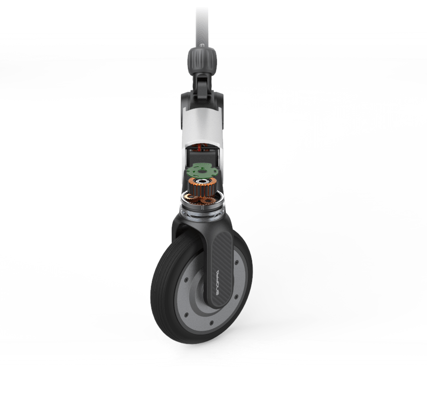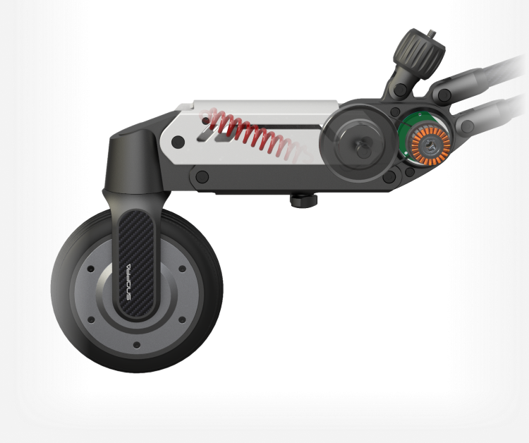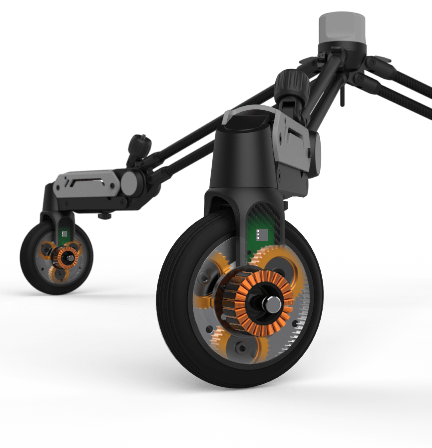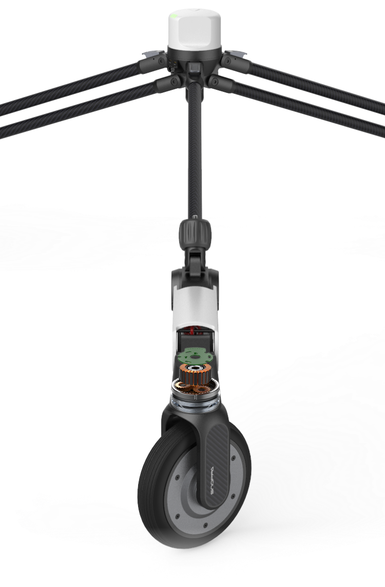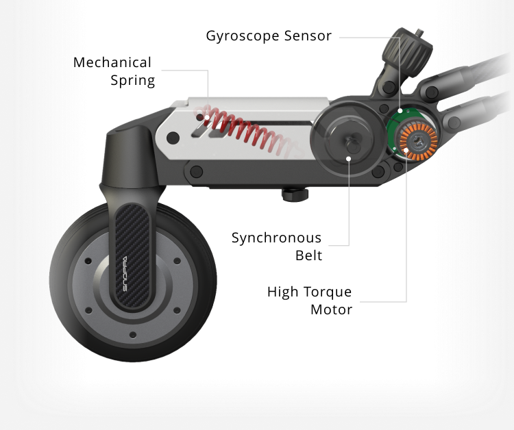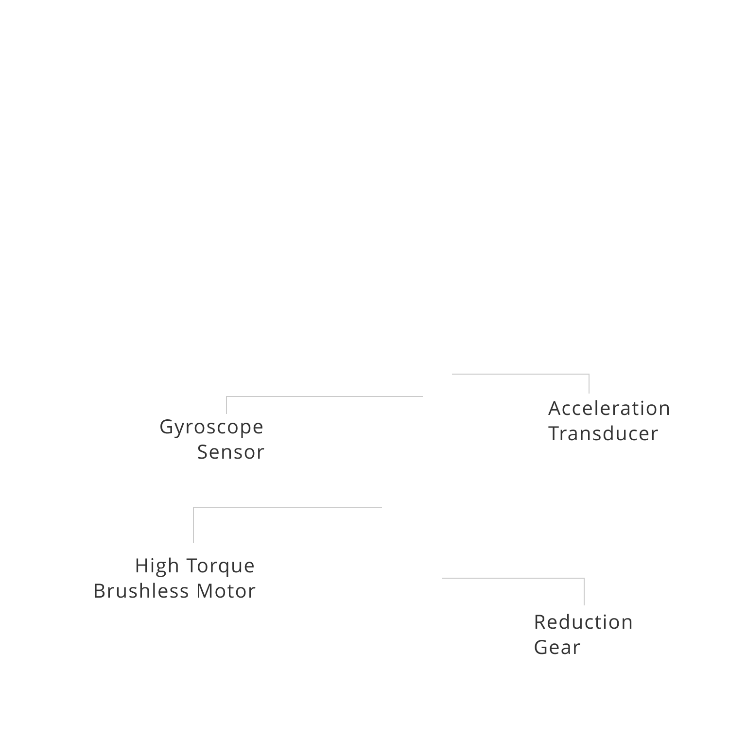 Each wheel arm has an independent gyroscopic sensor, a Hall sensor, and an accelerometer. These can detect instantaneous attitude change of Rover’s body within 30 nanoseconds, and drive the brushless motor to reversely compensate within 50 nanoseconds. This ensures stable movement - on any surface.