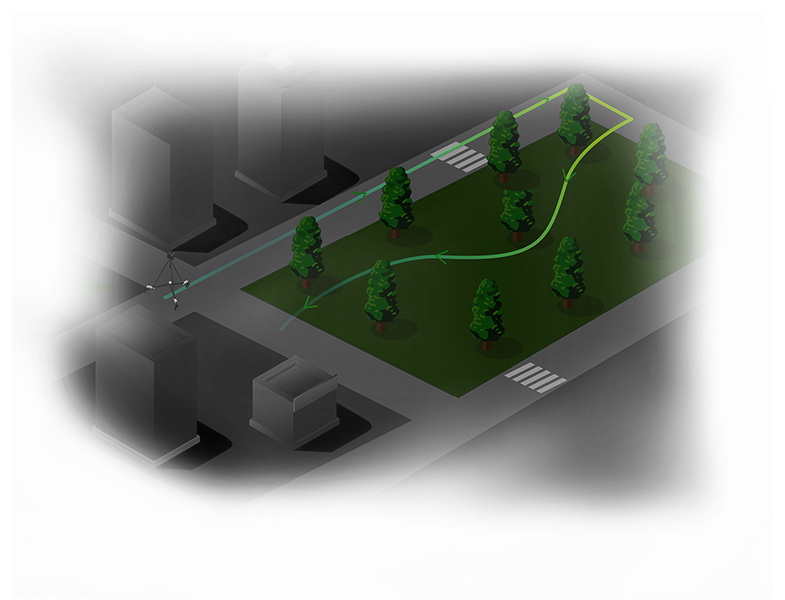 A “walking hyper lapse” requires a camera operator to walk at a specified interval. However, it is hard to guarantee the walking speed and stability of a person when a long and wide-range walk is required.